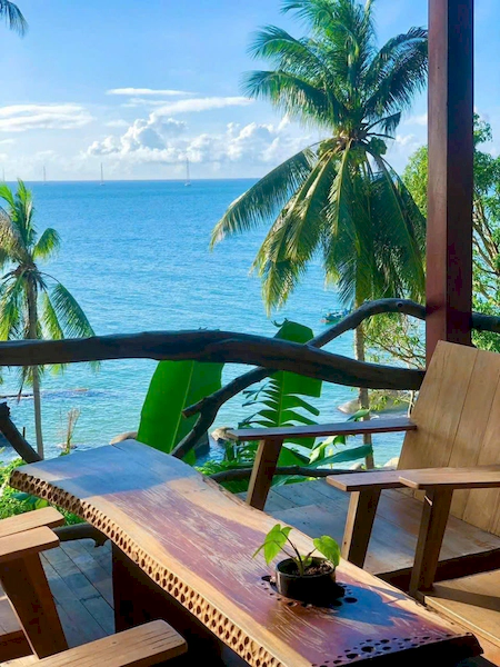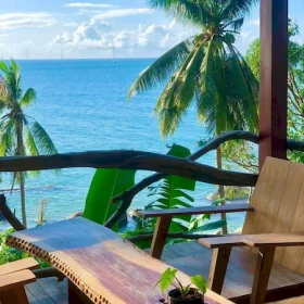 Khu vực hiên ngồi ngắm biển trong khuôn viên homestay, hứng gió biển