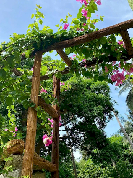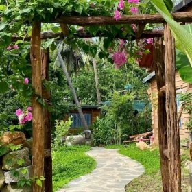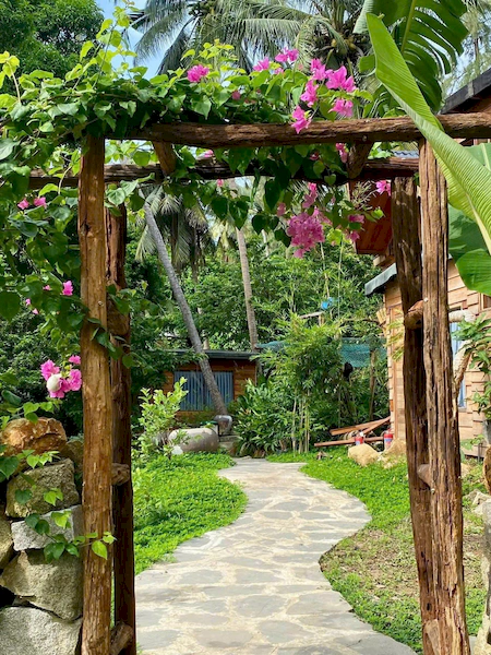 Khuôn viên nhỏ xinh hướng biển, xung quanh là cây xanh bản địa.