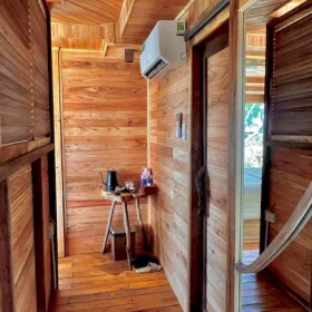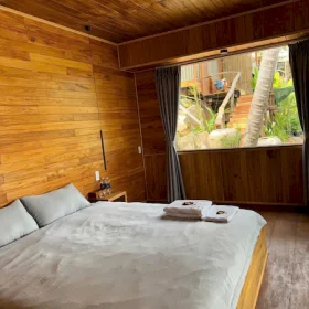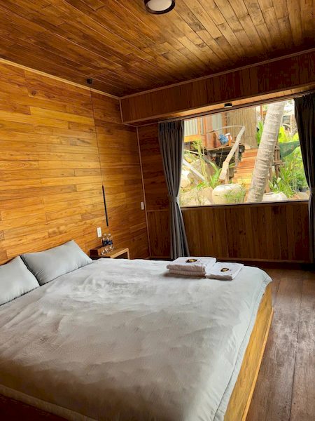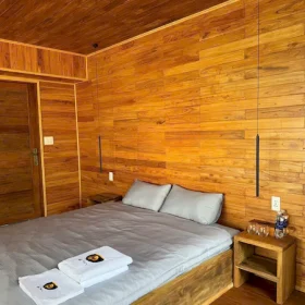 Diện tích 27m² – phòng gỗ mộc, gần gũi thiên nhiên.