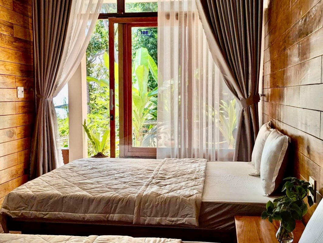 EcoHouse là homestay mới xây dựng bằng gỗ tự nhiên, mang đến không gian nghỉ dưỡng ấm cúng và gần gũi thiên nhiên.