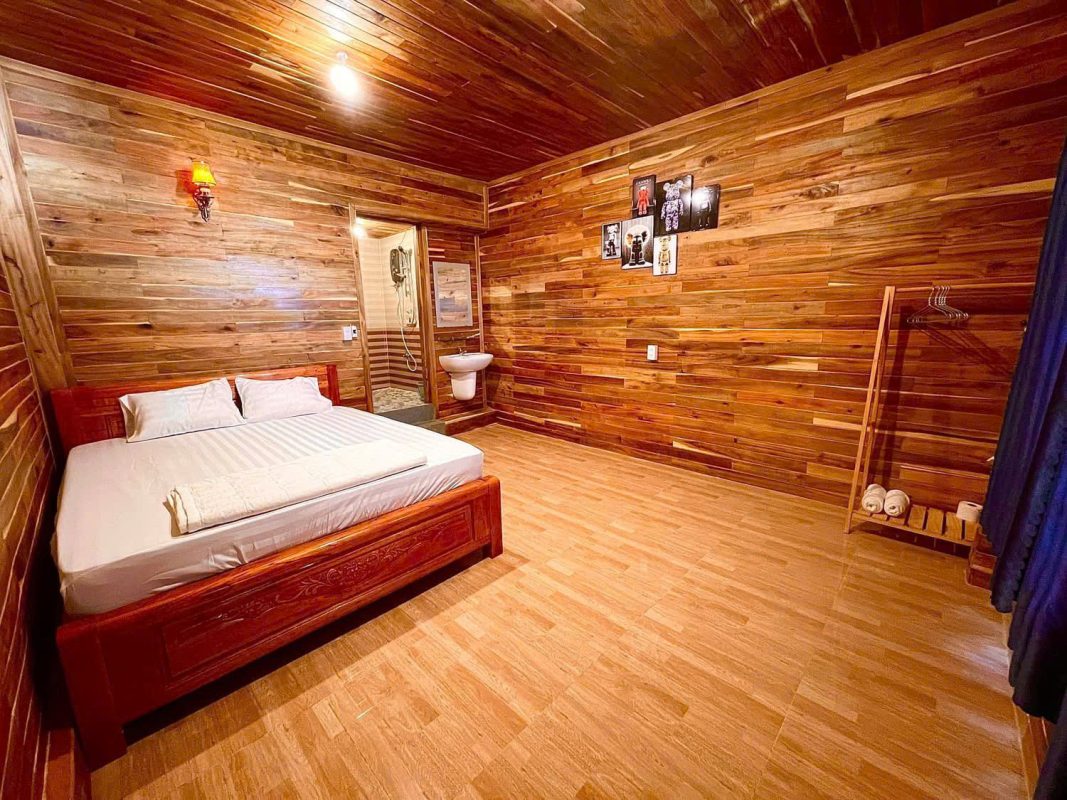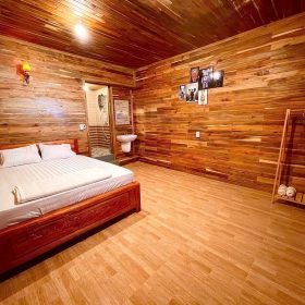 Phòng nghỉ đa dạng: phòng gỗ ấm cúng và phòng tường tiện nghi.